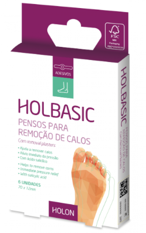 Os Pensos para Remoção de Calos HOLBASIC, com um disco central em espuma de polietileno, proporcionam uma ação suavizante e protetora. Ao suavizar a pele, estes pensos garantem uma remoção rápida e indolor do calo. Além disso, a sua espuma de PE central protege a área afetada contra a fricção e a pressão.