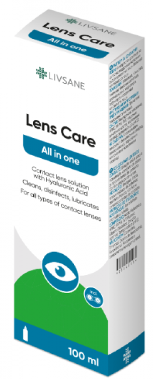 Livsane Solução para Lentes de Contacto enxagua, limpa, remove resíduos de proteínas, desinfeta, hidrata, lubrifica e conserva as lentes de contacto.