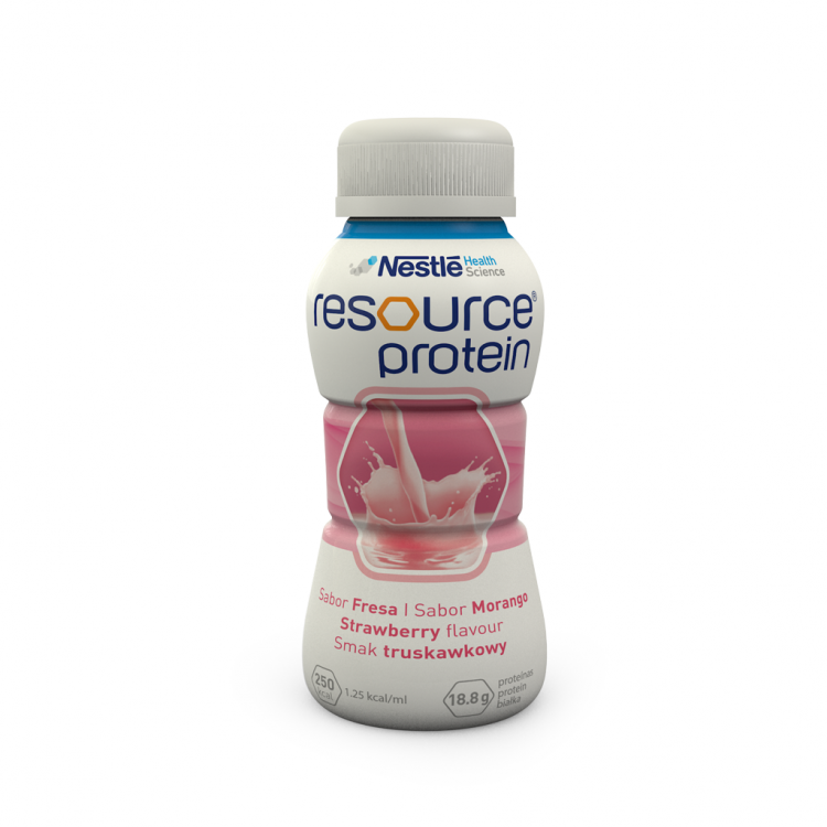Resource Protein Solução oral é um suplemento hiperproteico (18,8 g/200 mL). Contém uma concentração calórica de 1,25 kcal/mL. Possui vitaminas, minerais e oligoelementos necessários para uma alimentação completa. Isento de glúten. Disponível em diferentes sabores. Pode ser administrado diretamente ou por sonda.
