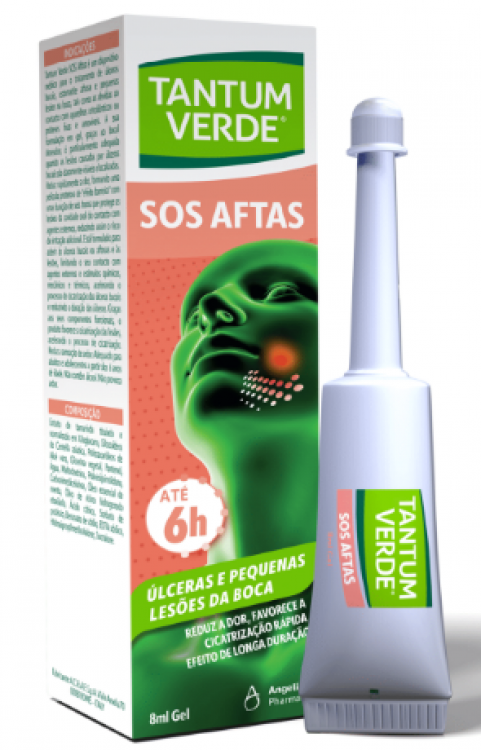 Tantum Verde SOS Aftas é um dispositivo médico para o tratamento de úlceras bucais, estomatite aftosa e pequenas lesões na boca, tais como as devidas ao contacto com aparelhos ortodônticos ou próteses fixas e amovíveis.