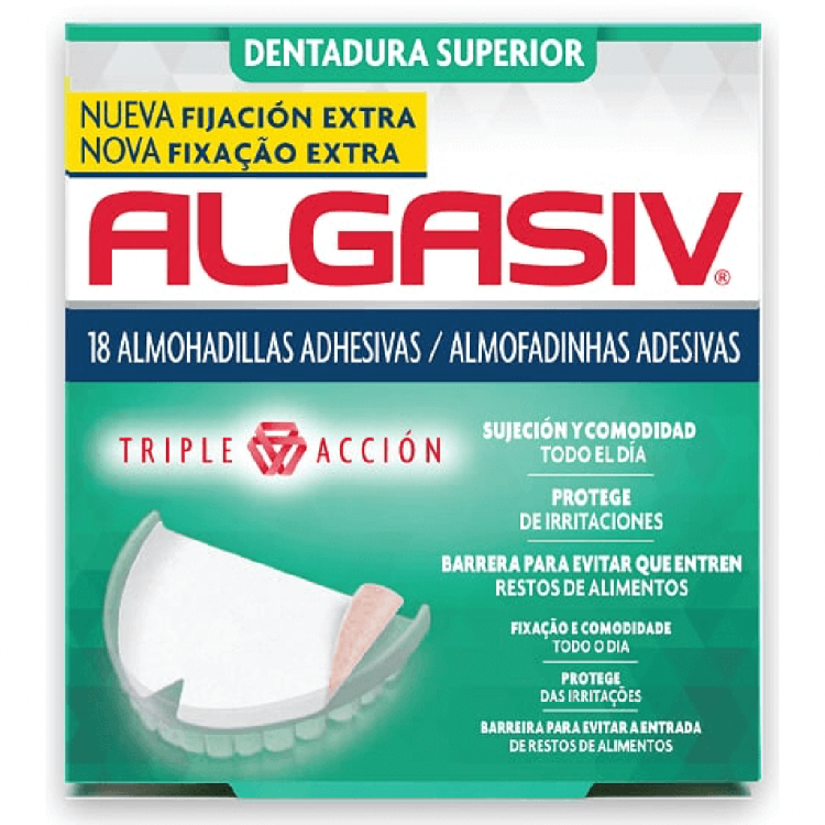 Algasiv Almofadinhas Adesivas Dentadura Superior 18 unidades