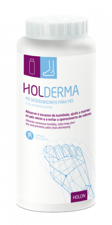 HOLDERMA PÓ DESODORIZANTE PARA PÉS absorve o excesso de transpiração nos pés e mantemos pés secos e confortáveis.