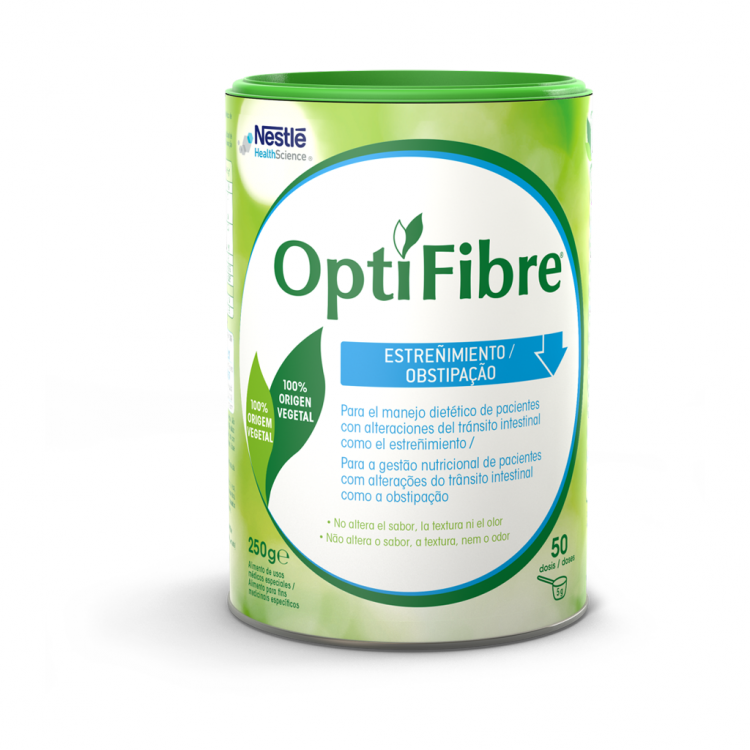 Optifibre é fibra solúvel 100% goma guar parcialmente hidrolisada. Alimento para fins medicinais específicos. Utilizar sob supervisão médica. Não adequado como fonte alimentar única.