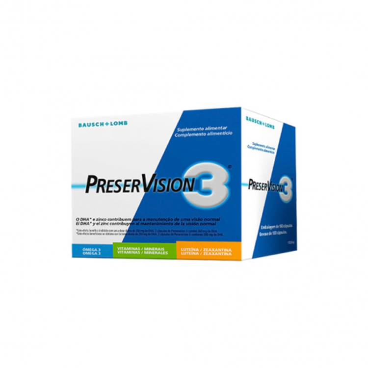 Preservision 3 ajuda a preservar a saúde dos olhos. É um suplemento alimentar rico em vitaminas e contém um sal mineral anti-oxidante, pigmentos da família dos carotenóides (luteína e zeaxantina) e ainda ácidos gordos ómega 3.
