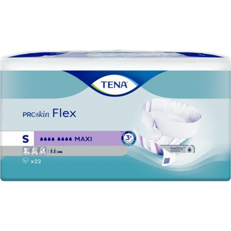 TENA Flex Maxi são cuecas com cinto para incontinência, flexíveis, concebidas para permitir mudas mais fáceis e ergonómicas, adequadas para pessoas com pouca ou nenhuma mobilidade. Para uma proteção excecional, a TENA ProSkin Flex com FeelDry Advanced™ afasta rapidamente o líquido da superfície, mantendo a pele seca. O núcleo de absorção super-rápida bloqueia rapidamente a urina, mesmo em maiores quantidades, para que se sinta seco. A camada inferior ConfioAir™ totalmente respirável permite que a pele respire. Todas estas características ajudam a preservar a saúde natural da pele. O cinto ajustável ComfiStretch permite um ajuste ao corpo, aumentando o conforto e garantindo uma melhor segurança antifugas. Para uma utilização fácil, o cinto possui bandas adesivas que podem ser apertadas à frente e são totalmente ajustáveis para se adaptarem aos diferentes tipos de corpo.